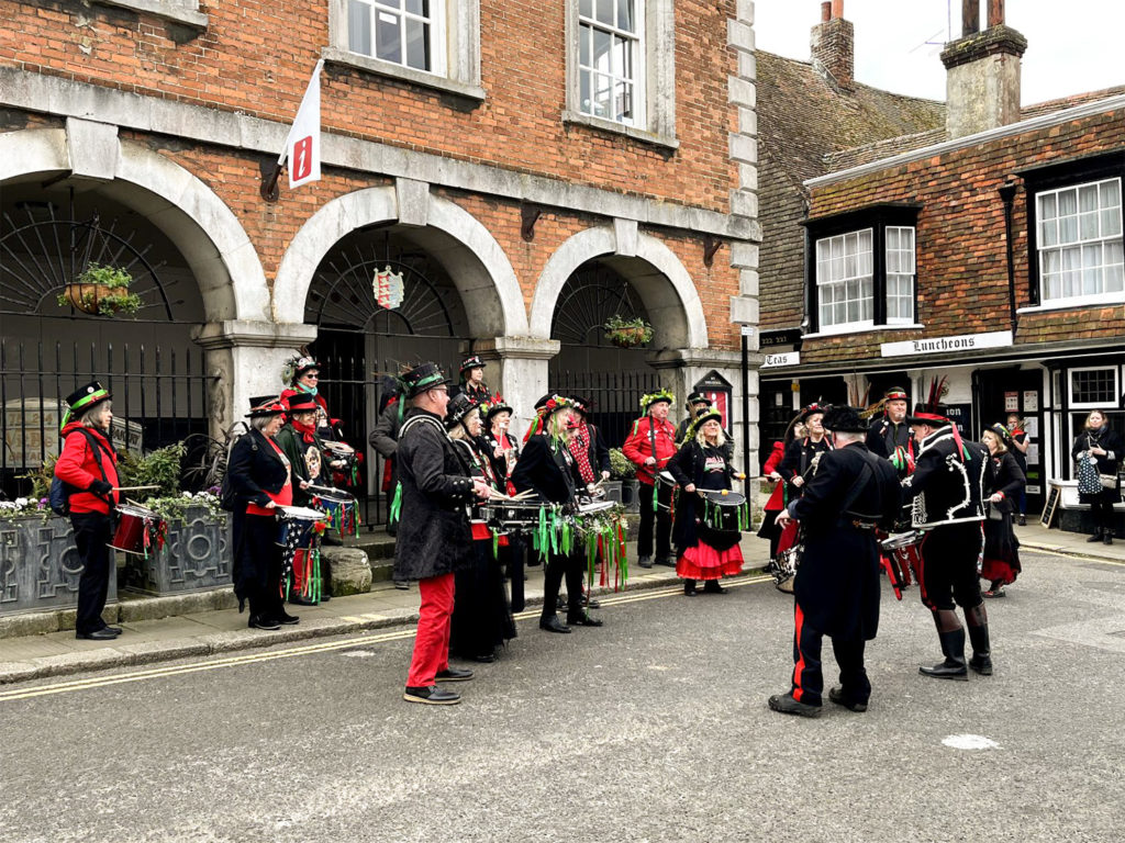 町に戻り歩き始めると、何やら赤と緑、黒の衣装を着たドラムのグループのパフォーマンスが始まりました。(Ryebellionというライで活動しているグループのようです)全く知らなかったのですが、この日は町中でイベントが予定されていました。