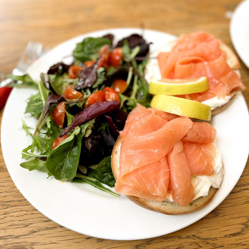 サーモンとクリームチーズのベーグルのオープンサンドを注文したのですが£7ぐらいでこのボリューム、そして今までイギリスで食べたサーモンの中で一番美味しかったです!