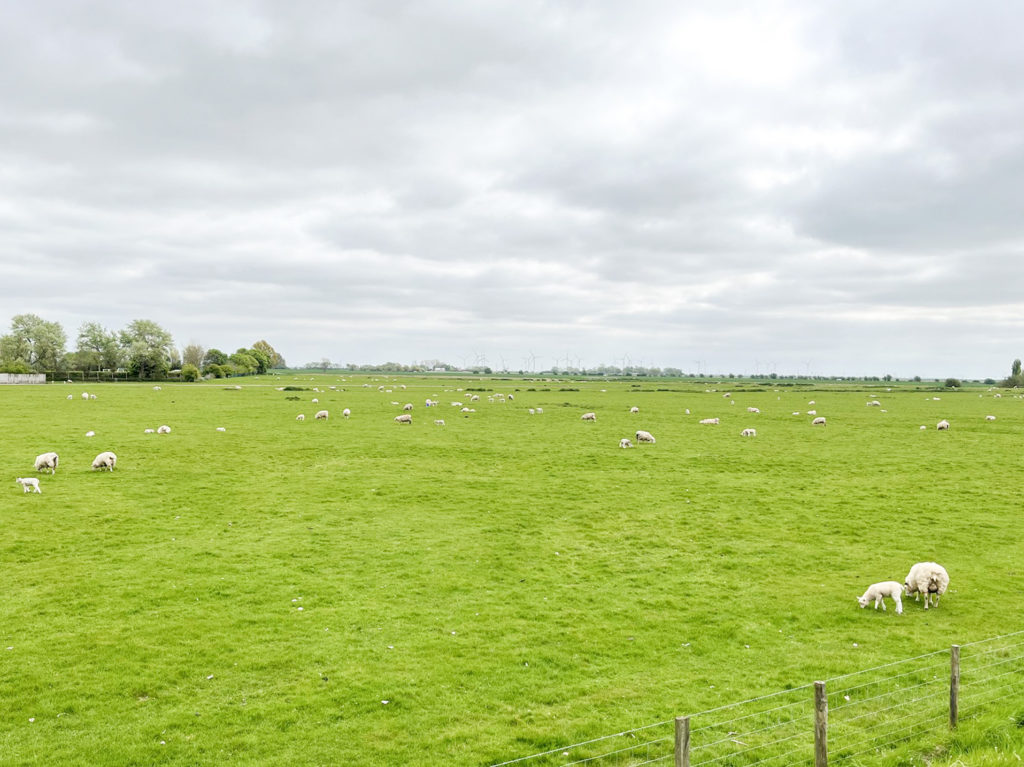ブラウンの屋根にレンガ造りのお家が並んでいて、その向こうに羊の群れが見えて、ととてもイギリスらしいかわいらしい景色が堪能できます。