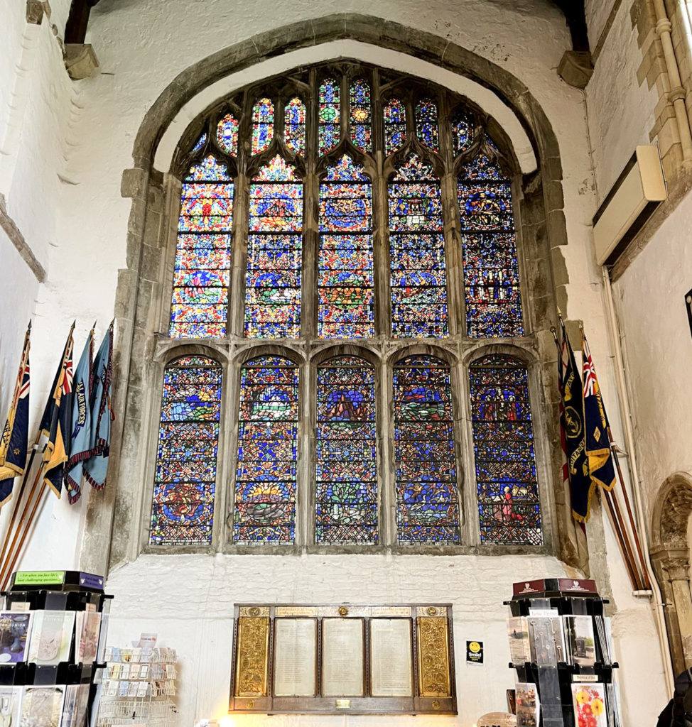 ステンドグラスもとても凝っています。教会自体は無料で入れますが、£4払うと教会の塔に登ことができました。途中とても狭く、肩を狭めないとつっかえてしまいそうな通路もありますが、無事に登ると塔から町が一望できました。※2022年4月の情報です