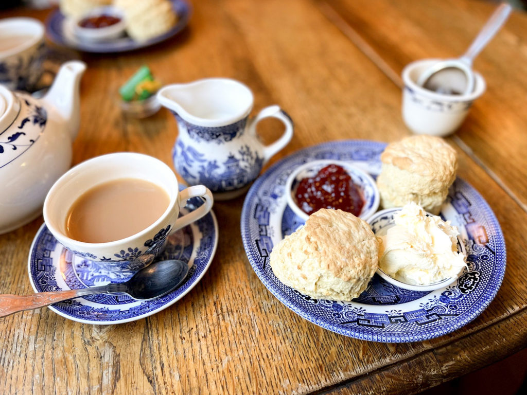 閉店ギリギリに行ったのでお客さんは私たちだけですぐにクリームティーが運ばれてきました。優しい甘さのスコーンと酸味の強い苺のジャムが小さな町とはいえ、一日中歩きまわって疲れた体に染み渡ります。£7.4で大満足のティータイムでした〜