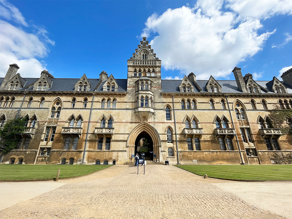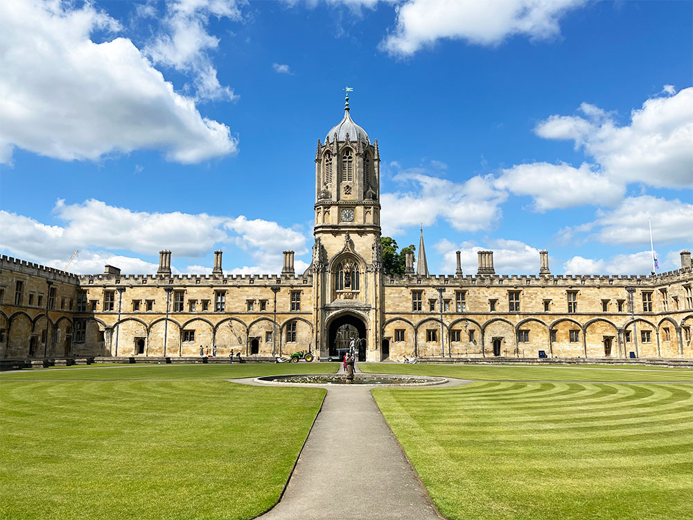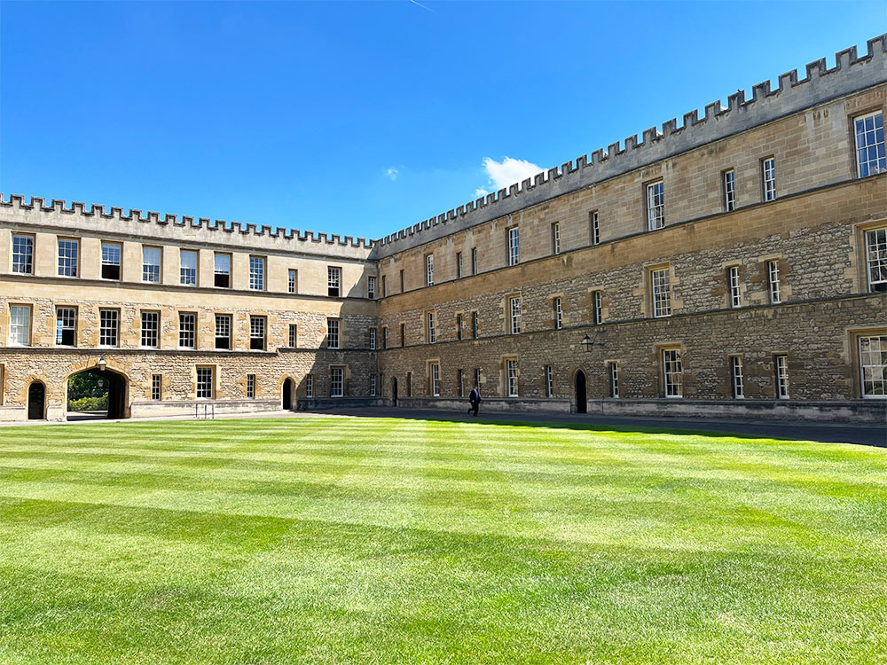 中庭は芝生が美しく整えられていて、とても“イギリス”を感じました。トムタワーを中心として見事なシンメトリーです。
