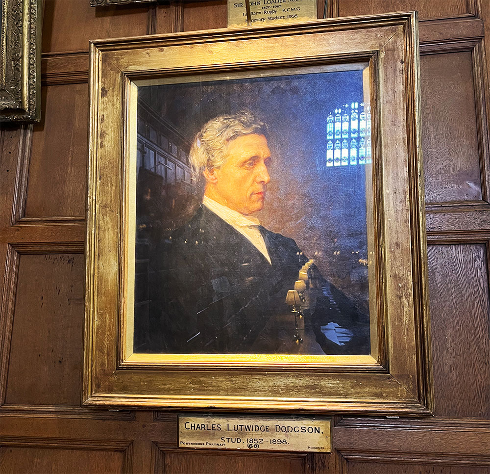 壁にはクライストチャーチにゆかりのある人物たちの肖像画が飾られていました。ここで教鞭をとっていたルイス・キャロルの肖像画も見つけました。