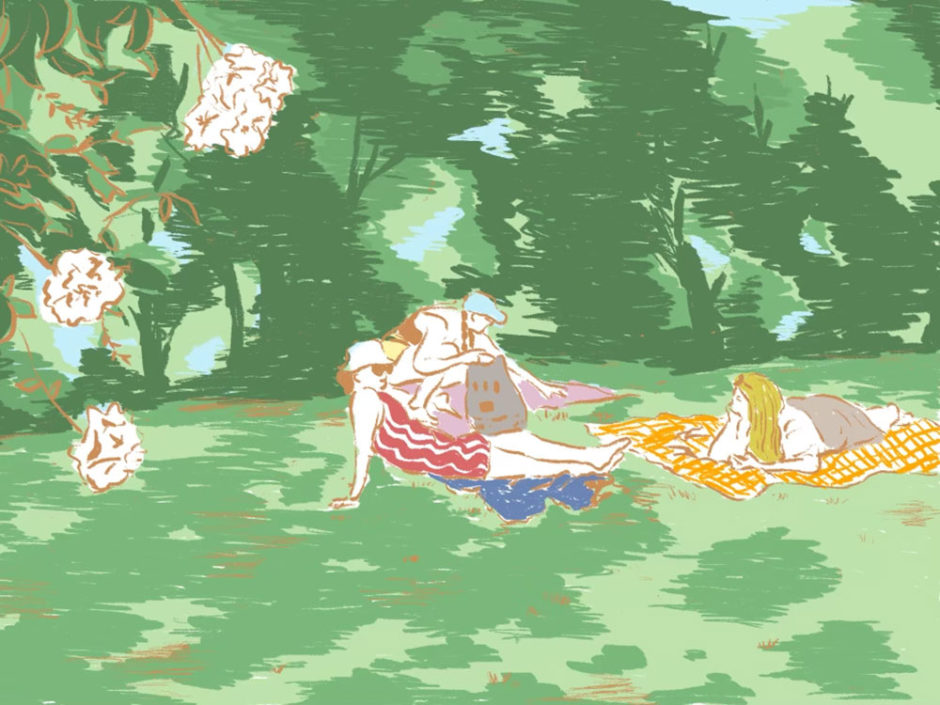中庭では学生がいい天気の中チルアウトしていました。バラもすごくきれい!